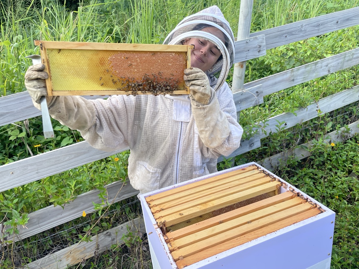 We are busy as bees at Levantando! Thanks to our generous Levantando donors, we began our Honeybee initiative in April 2024. Beekeeper Maria was selected for our